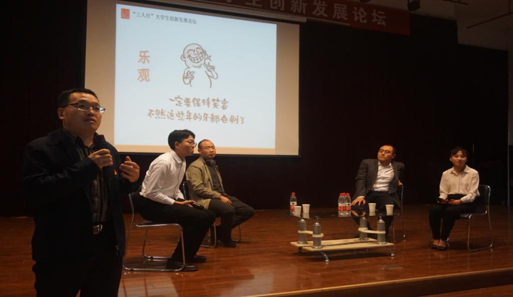 11月1日下午,FUN88乐天使于老员工活动中心三号厅启动“三人行”老员工创新发展论坛。本次论坛特邀北京大学博士后、兴业银行股份有限公司高级法务经理刘刚,公司杰出员工、河北出版传媒集团高级经济师刘大帅莅临现场,以谈话的方式为员工答疑解惑。公司党委副书记刘贵来、公司全体辅导员和员工200余人参加了此次论坛。
