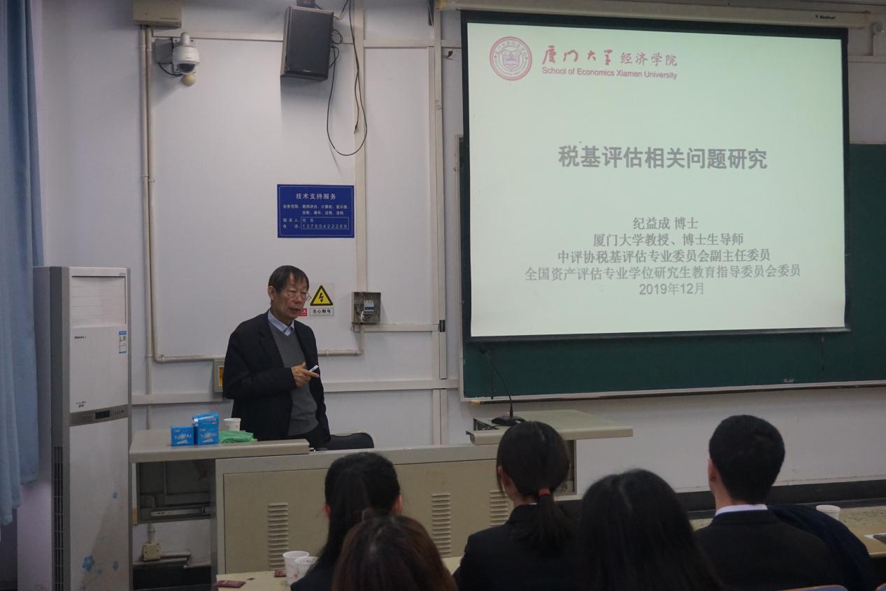 12月8日,厦门大学博士生导师、全国资产评估高等教育实验教学研究会会长、中评协税基评估专业委员会副主任委员、全国资产评估专业学位研究生教育指导委员会委员纪益成教授应FUN88乐天使邀请,作题为“税基评估相关问题研究”的学术报告,财税公司副经理仇晓洁出席并主持了本次报告会,财税公司部分师生共100余人聆听了报告。